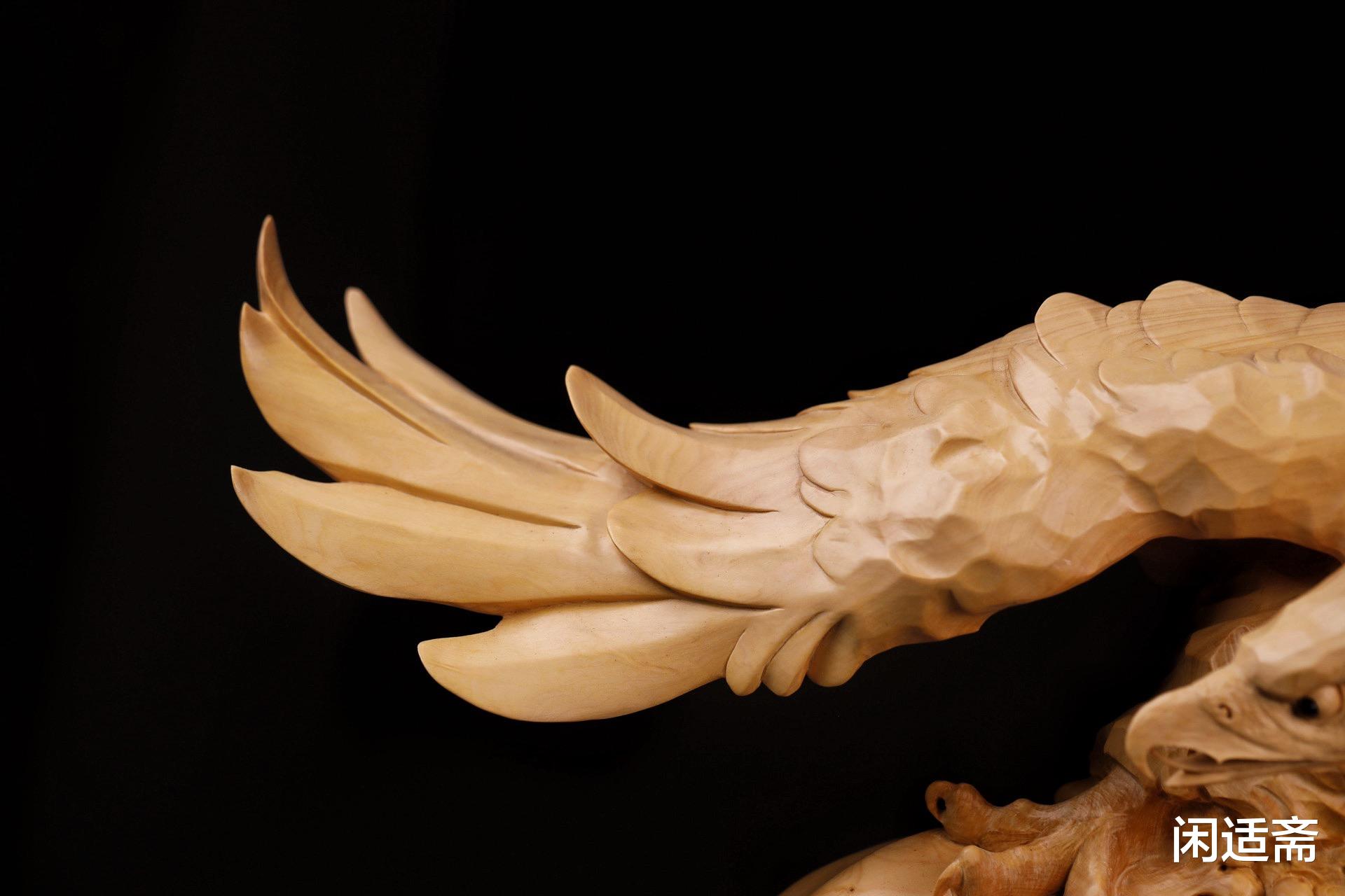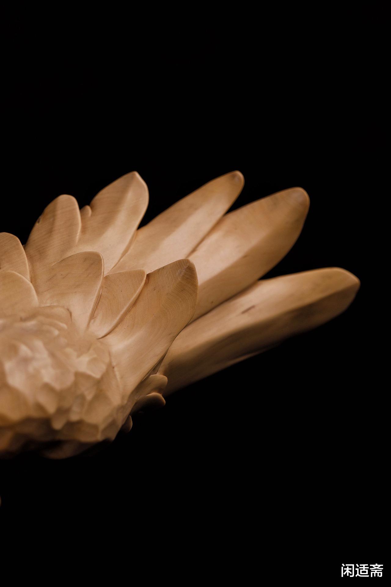 此摆件采用整料镂雕工艺精心雕琢,将雄鹰的雄姿展现得淋漓尽致。工匠摒弃拼接之法,以一块完整黄杨木为原料,通过精湛的镂雕技艺,让雄鹰羽翼层次分明、舒展有力,每一片羽毛的纹理都清晰可辨,仿佛下一秒便要振翅翱翔。雄鹰神态凌厉,锐利的鹰眼炯炯有神,喙部尖锐挺拔,利爪强劲有力,将老鹰捕食时的迅猛与翱翔时的霸气完美呈现,真正做到形神兼备。