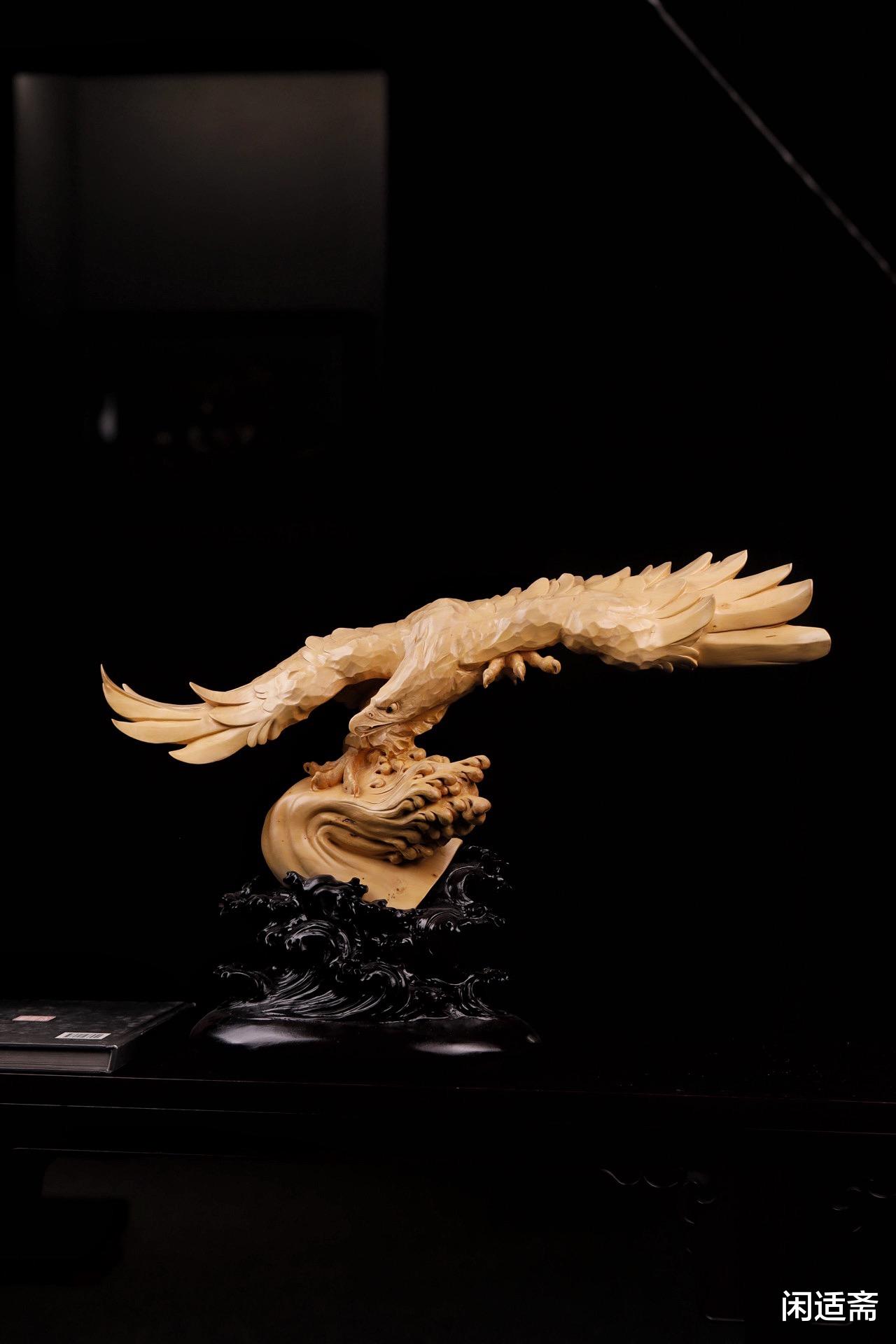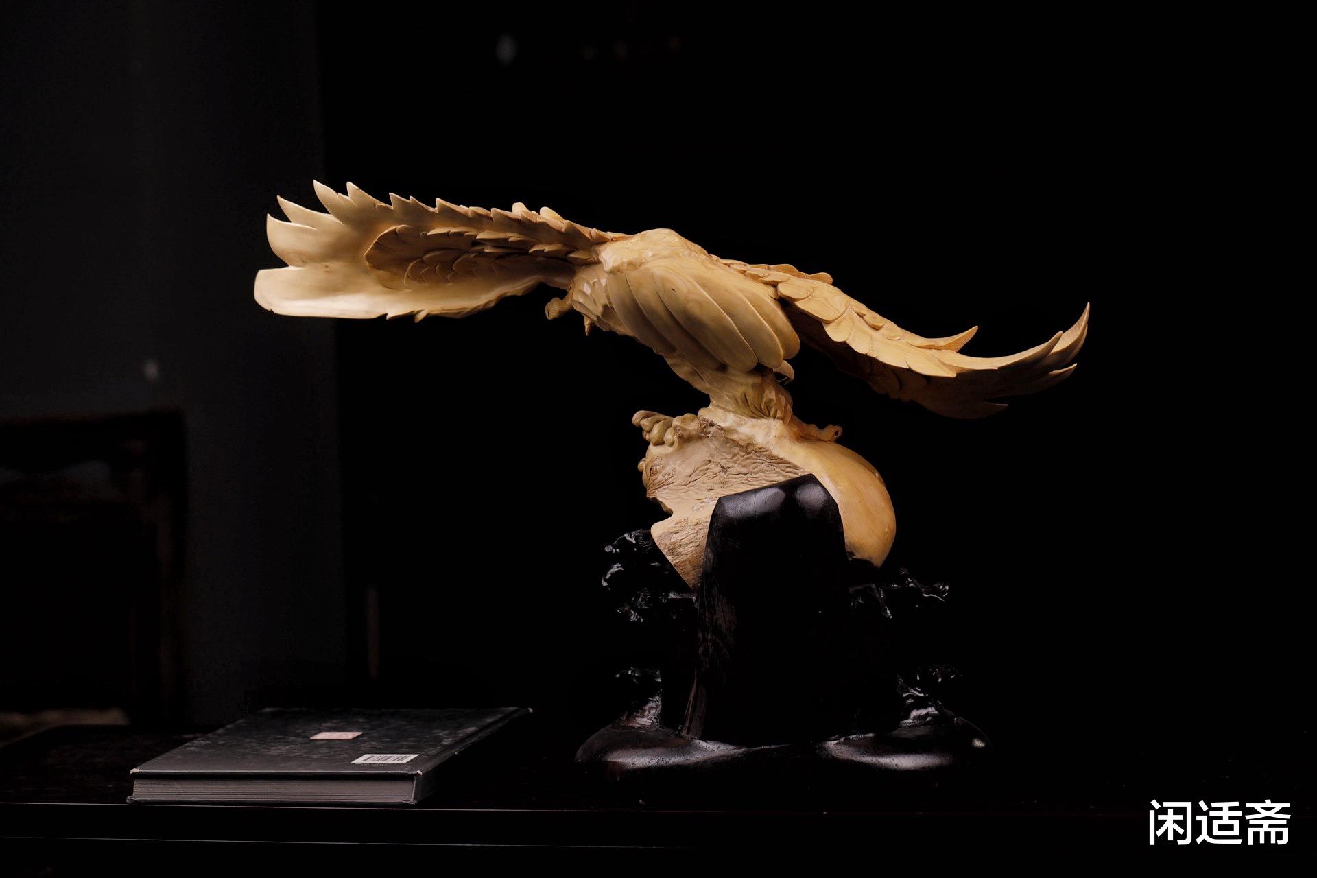 作为收藏与陈设佳品,该摆件不仅工艺精湛,寓意更是吉祥美好。“鹰” 谐音 “英”,象征英雄气概,“鹰击长空” 则寓意鹏程万里、事业腾飞,无论是置于客厅彰显主人雄心壮志,还是作为礼品赠予创业者、奋斗者,都极具意义。加之黄杨木本身的稀缺性与木雕工艺的艺术性,此摆件兼具观赏、收藏与传承价值,是彰显品味与传递美好期许的不二之选。