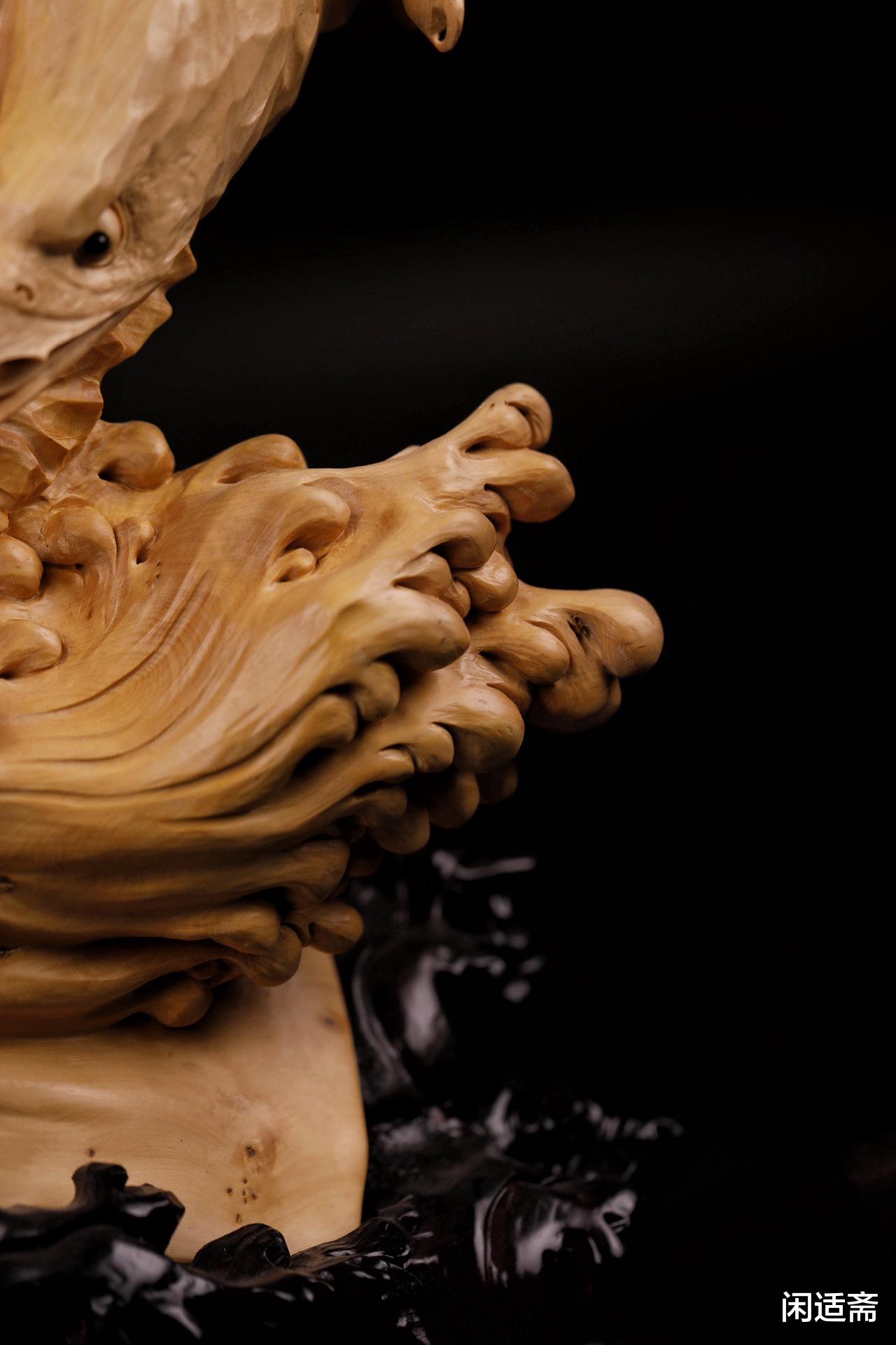 摆件下方黑檀木的浪涛底座设计巧妙,与雄鹰形成动静相宜的画面。浪涛线条流畅自然,起伏的形态模拟出海面波涛汹涌之景,既稳固了摆件整体,又以浪涛的 “动” 衬托出雄鹰立于其上的 “稳”,更凸显出 “鹰击长空” 的磅礴气势,让整个作品富有层次感与故事性。