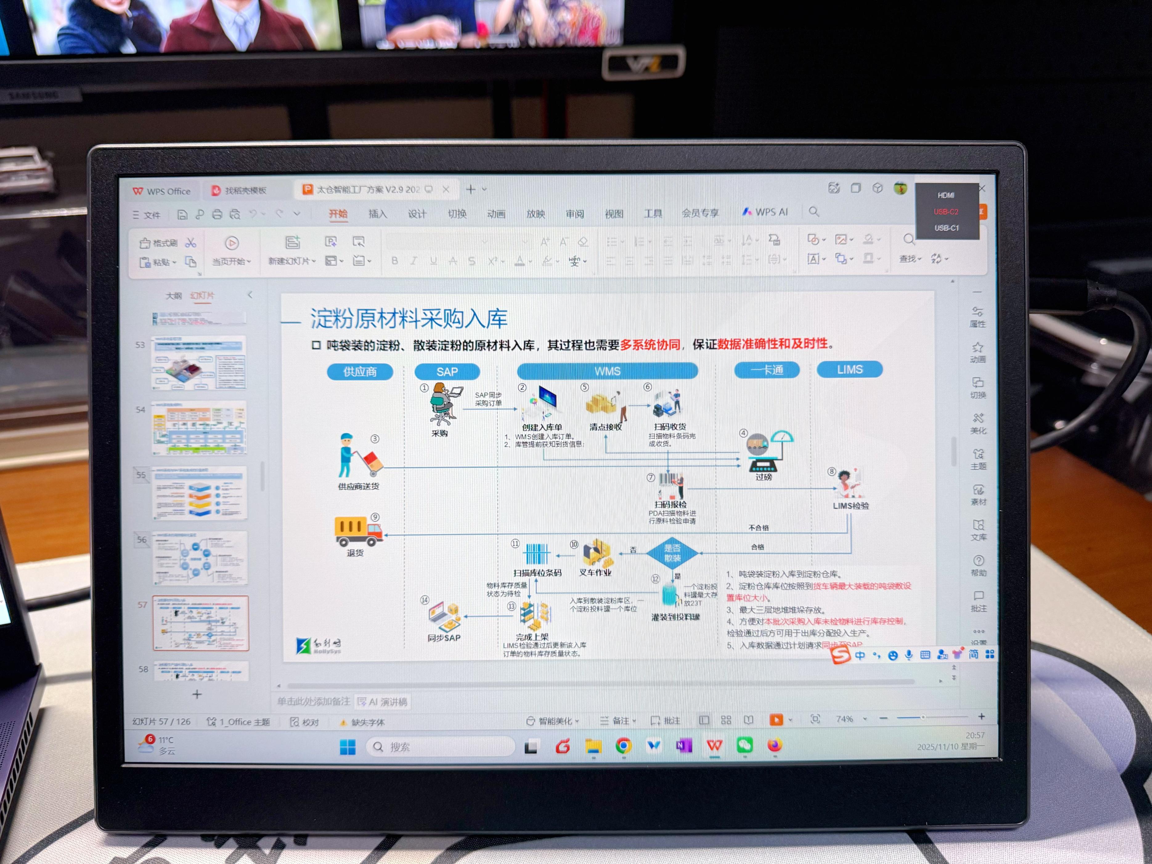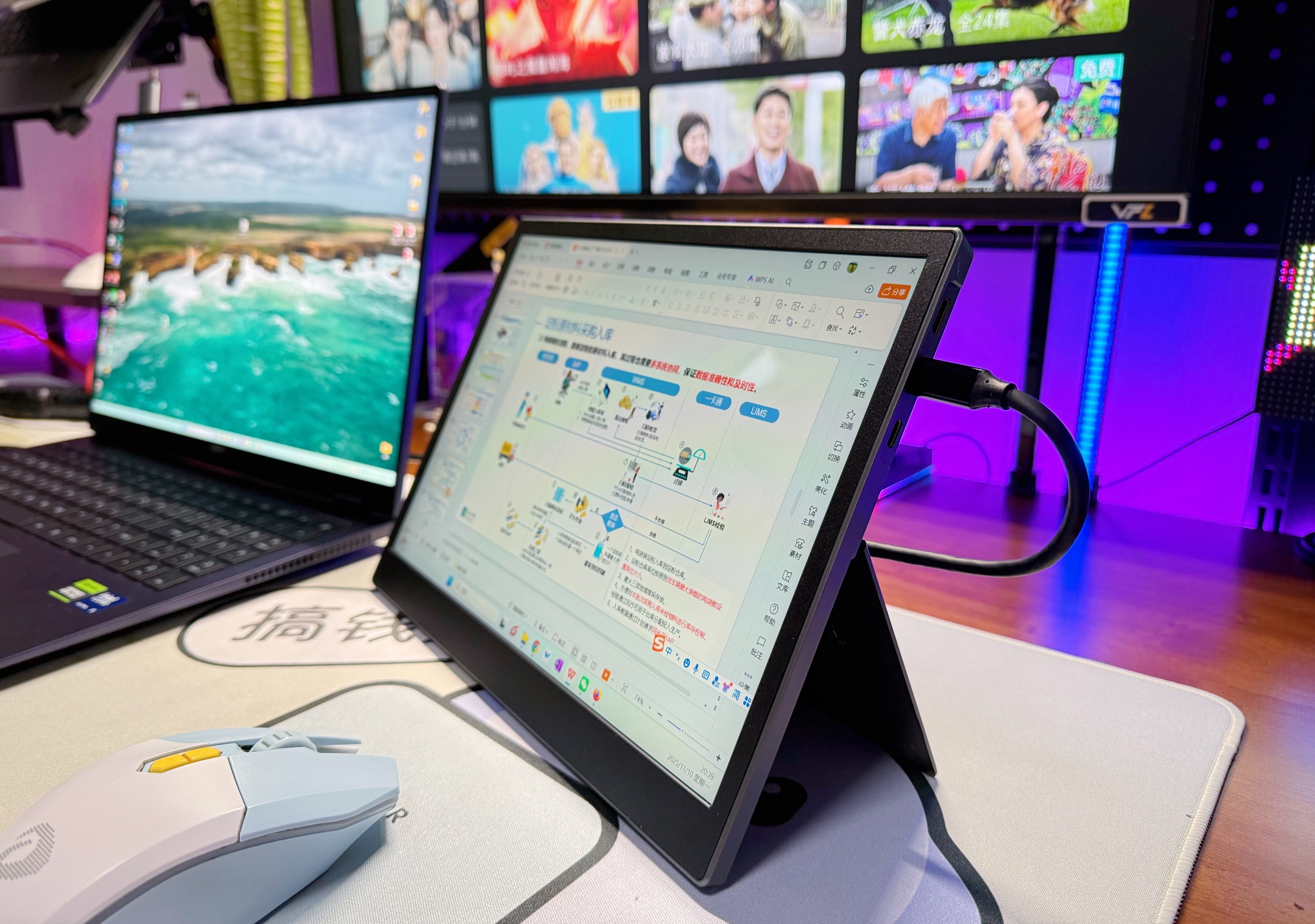 更方便的是它的兼容性,不仅支持笔记本电脑,还能通过OTG接键鼠,让手机秒变小电脑。有次临时需要处理表格,我用手机Type-C连接便携屏,直接变身小电脑,能同时打开多个APP,再接上无线键鼠,直接在大屏上编辑数据,操作体验和电脑几乎没差别。而且它不用额外带电源,笔记本或手机就能供电。
