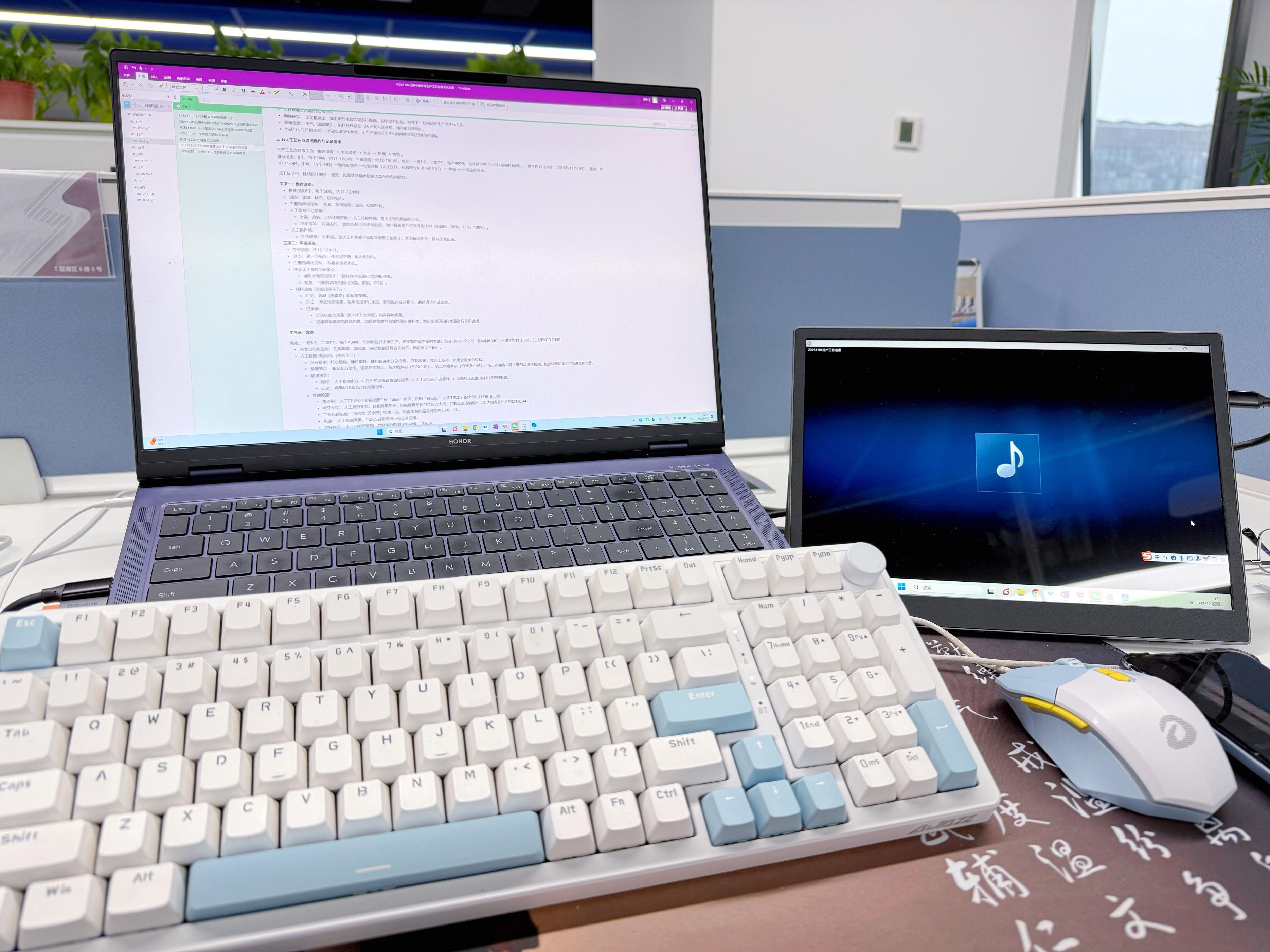 兼容性方面也没话说,不管是荣耀、苹果还是荣耀的平板,Type-C一线就能连接,不用额外装驱动。平时用它看论文、整理知识点,双屏操作能同时展示不同内容,记忆效率也更高。