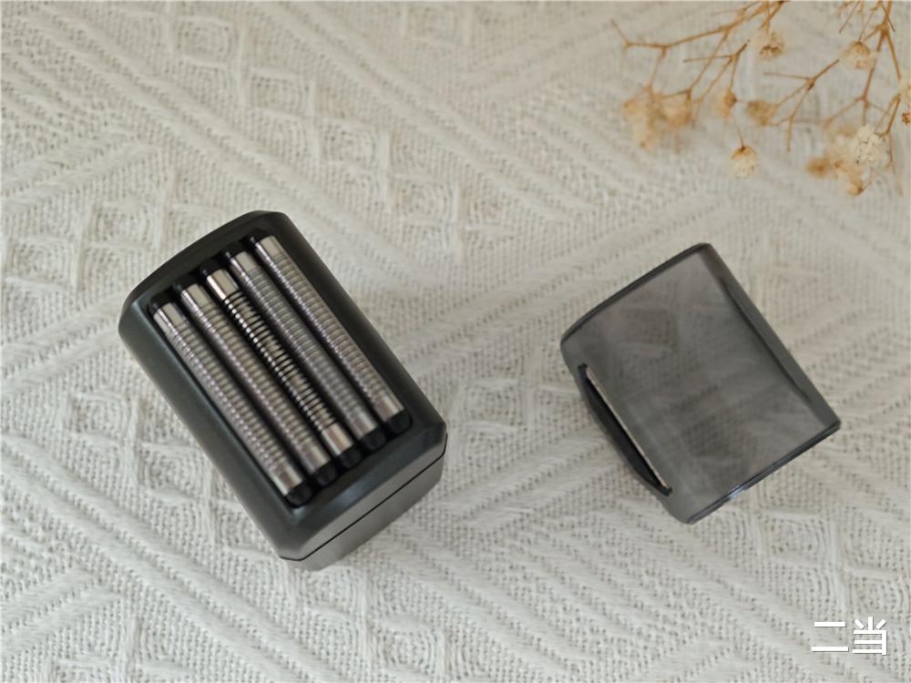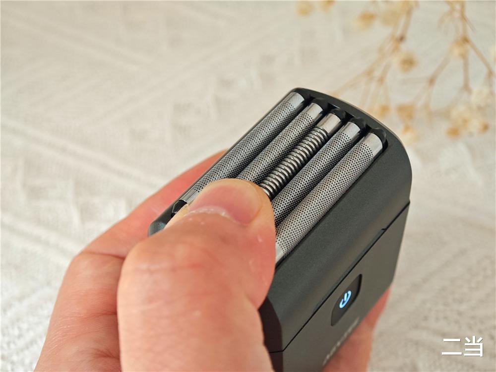 未野往复式迷你剃须刀采用进口浮动五刀头设计,搭载德国进口598HV不锈钢刀叶,配合0.041mm微米级超薄网膜,可以无死角贴合面部曲线、下巴、喉结、下颌线难剃部位,做到贴根切割,一次剃须,全面洁净,不像贴面式剃须刀,部分区域一次性剃不到,需要多次剃除。
