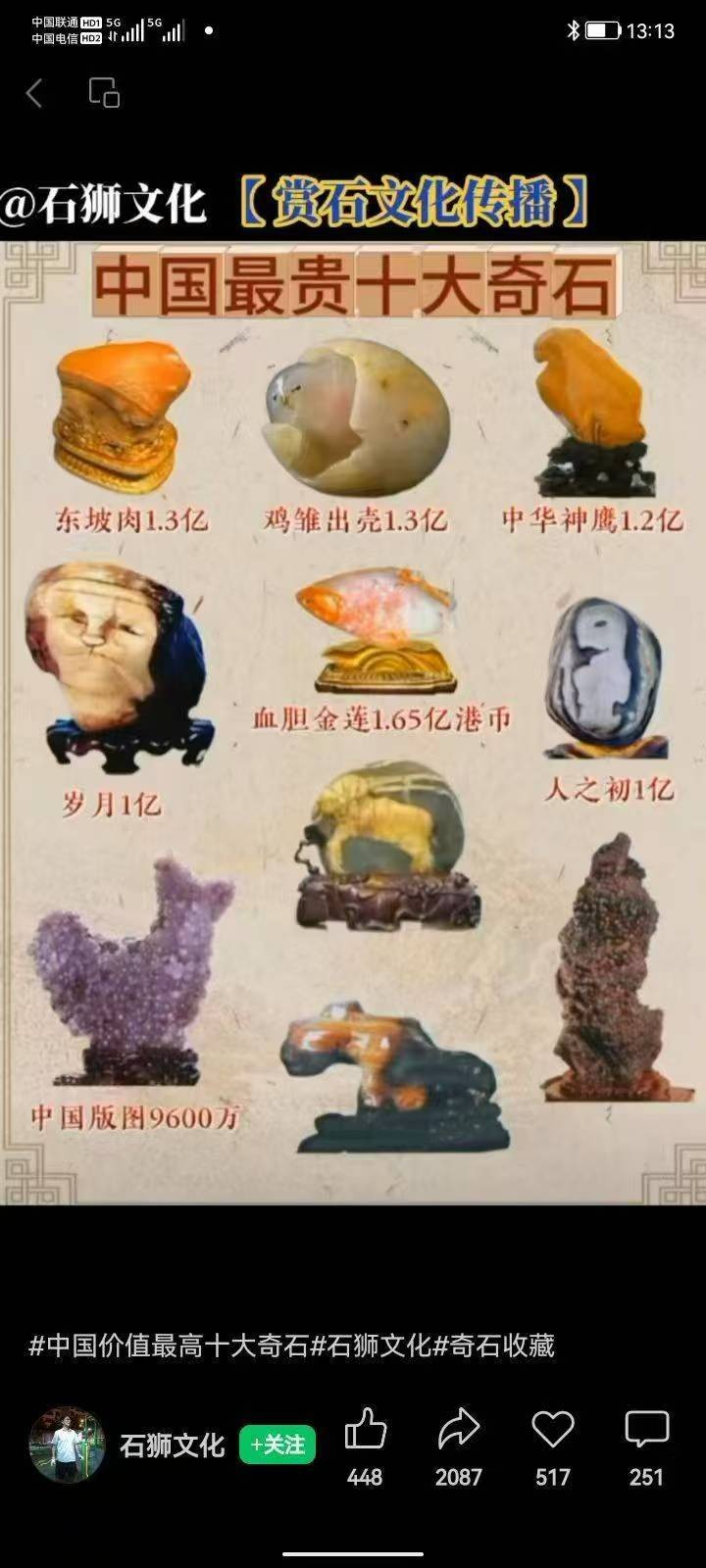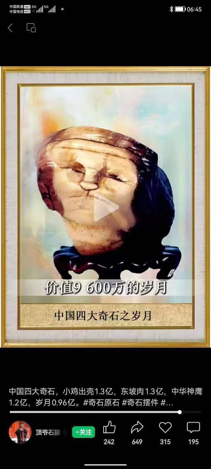 一、天然玉石天然图案:丹霞映苍松,美哉。二百万