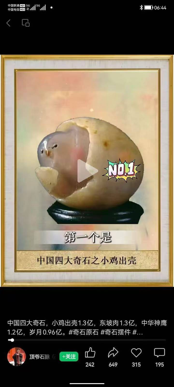 在他的收藏中,有一块树化玉尤为引人注目。它不仅形态优美,更重要的是,它能够为古气候研究提供宝贵的证据。这块玉石被大学拿去作为科研项目的一部分,为科学研究贡献了自己的力量。付小明的生活简朴至极,他吃着简单的咸菜粥,骑着破旧的电瓶车,但在收藏天然玉石这件事上,他却从不吝啬。他甚至将自己的书画拿去拍卖,用所得的资金来收购更多的玉石。在他看来,这些玉石是地球的活化石,是不可再生的宝贵资源,值得他用一生去守护。