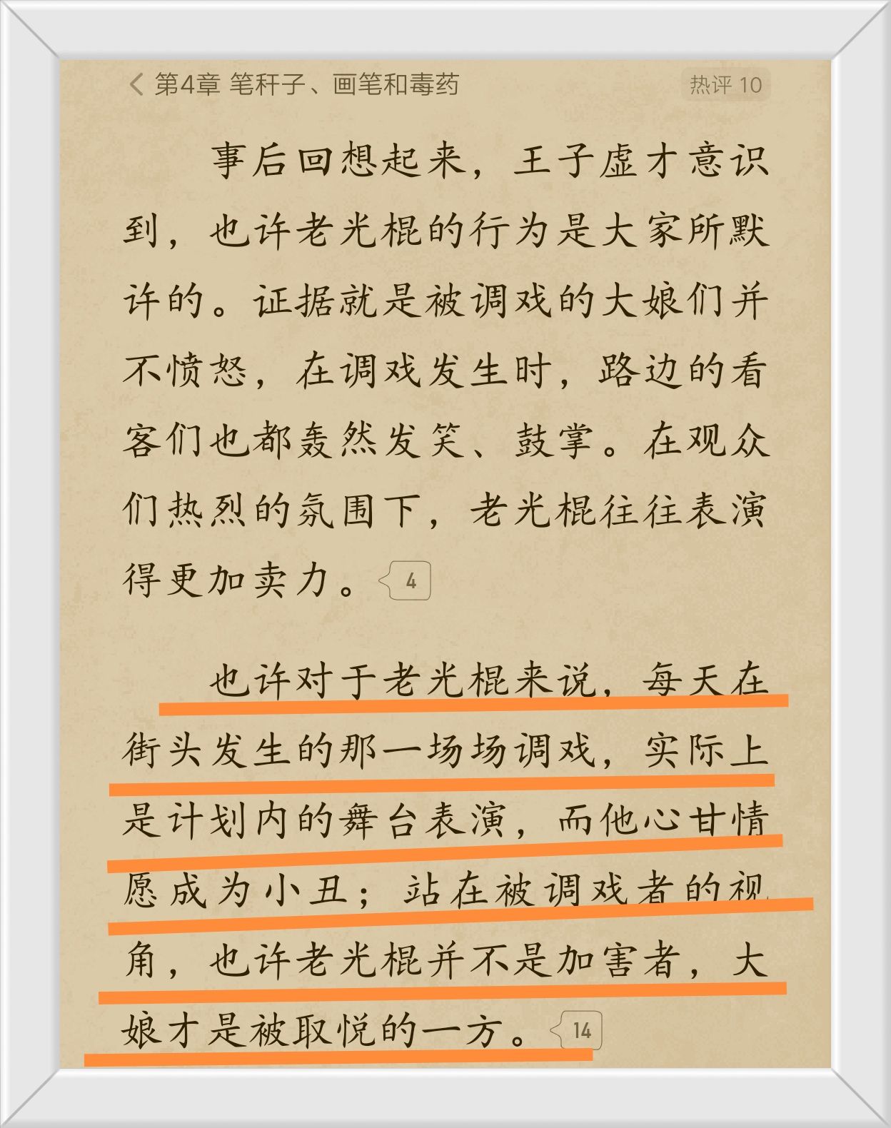 在小说中笔者最喜欢怎么一段:讲诉的是主角与来检查的上级因为事件,在酒桌上拼起了报“菜名”,上级报一个作者名,主角就能说出这个作者的全部长篇小说,这一比拼以主角大胜而归,第二天就被机关上找去,上演了一场文采救场的戏码。被看上,想调主角去写材料。而主角问出了一个很有意思的问题,写的材料上能署名吗?因此而拒绝了调岗、也拒绝了前程。