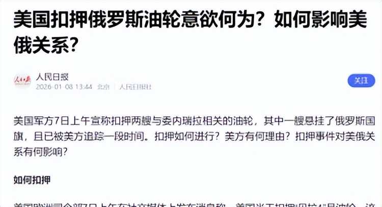 人民日报《美国扣押俄罗斯油轮意欲何为?如何影响美俄关系?》