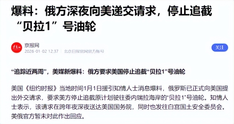 北京日报《爆料:俄方深夜向美递交请求,停止追截“贝拉1”号油轮》