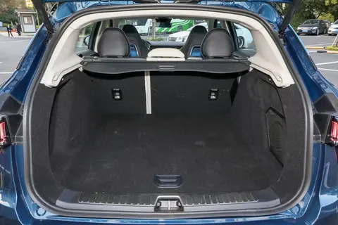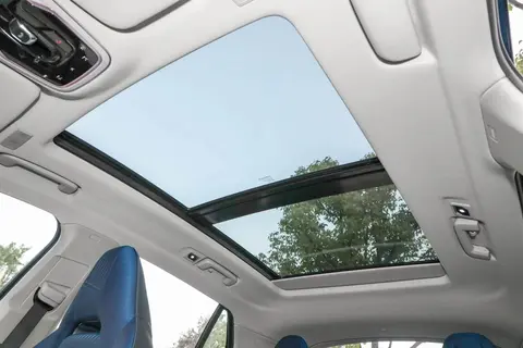 车身侧面线条流畅自然,半隐藏式门把手设计既降低了风阻系数,又提升了科技感。配18英寸轮毂,有很强的抓地力,与车身完 美相融合。悬浮式车顶行李架为长途驾驶提供了便捷性,可以多放上几个行李箱、孩子的滑板车等,开在马路上那也格外吸引人的眼光,成了一颗璀璨的明星。