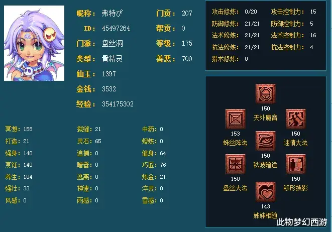 除女儿村外,角色选择主修20,双抗20,宠物攻修和法修15,师门技能150即可。号价均在4000左右,四个号总价1.6万左右。