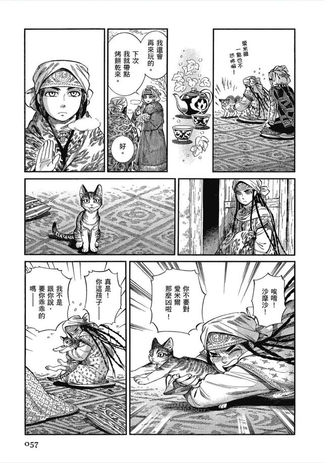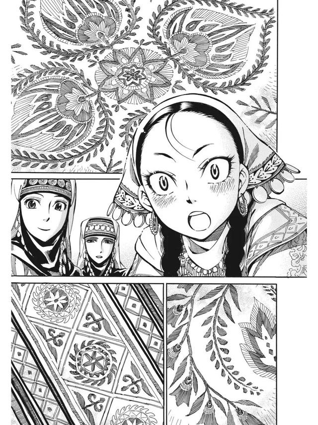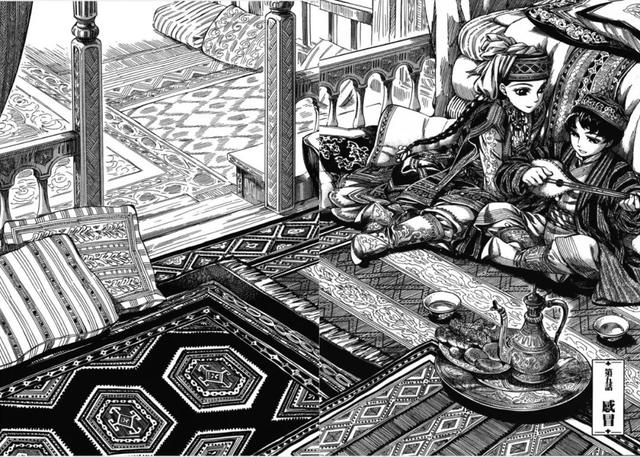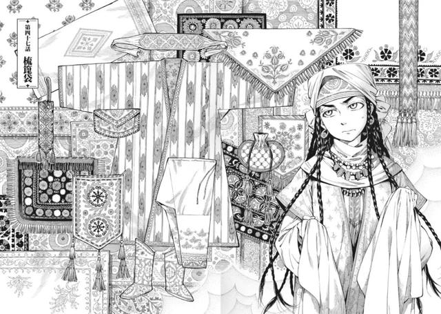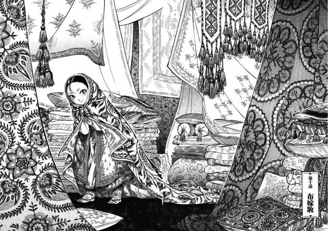 在《姐嫁物语》中,森薰还精心安排了中亚地区文化中常见的木雕、刺绣布嫁妆等元素,为保证习俗的准确性,她会事先调查这些元素的含义和技术,并根据故事情境让合适的人、事、物登场,细致地描绘了一些习俗在中亚民族中的重要性,展现了其中的文化意义。