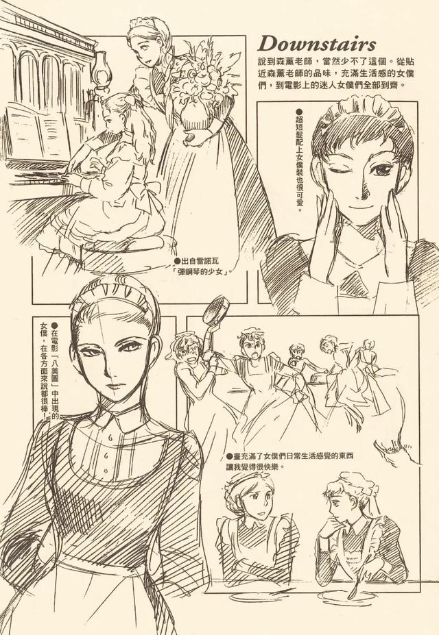 对于英伦文化的喜爱,还要从小说起。从小就爱读书的森薰,在童年时期就接触了各种外国图画书和儿童读物,书中经常出现的女仆形象逐渐引起了她的憧憬和好奇,外加喜欢在纸上勾勒线条,一放学后她便回家沉浸在画画的世界里。