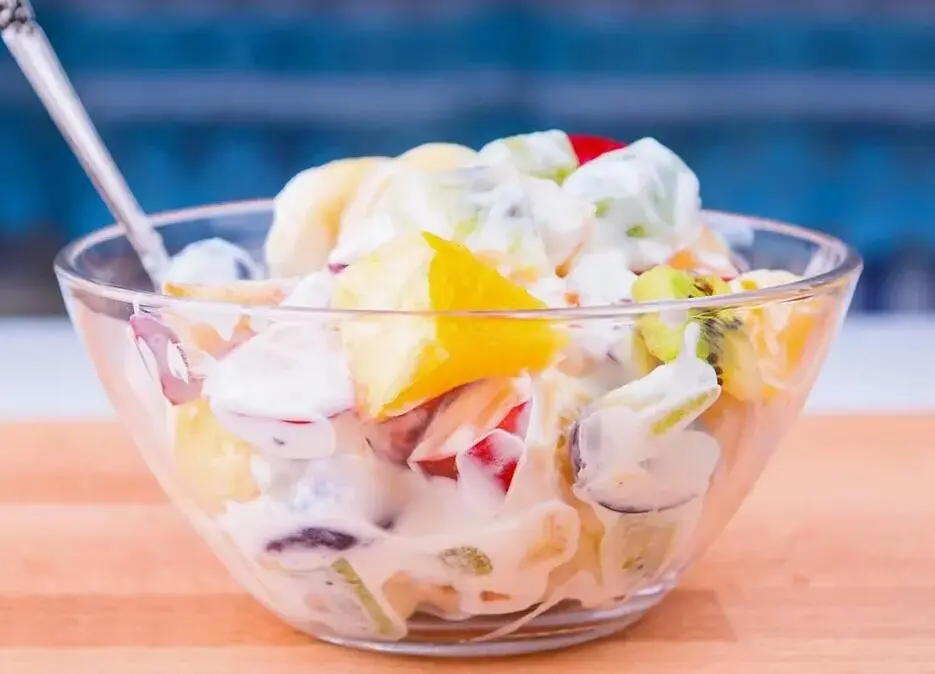 做法:将水果洗净后切块或切片备用。将酸奶倒入碗中,加入切好的水果块或片搅拌均匀即可。