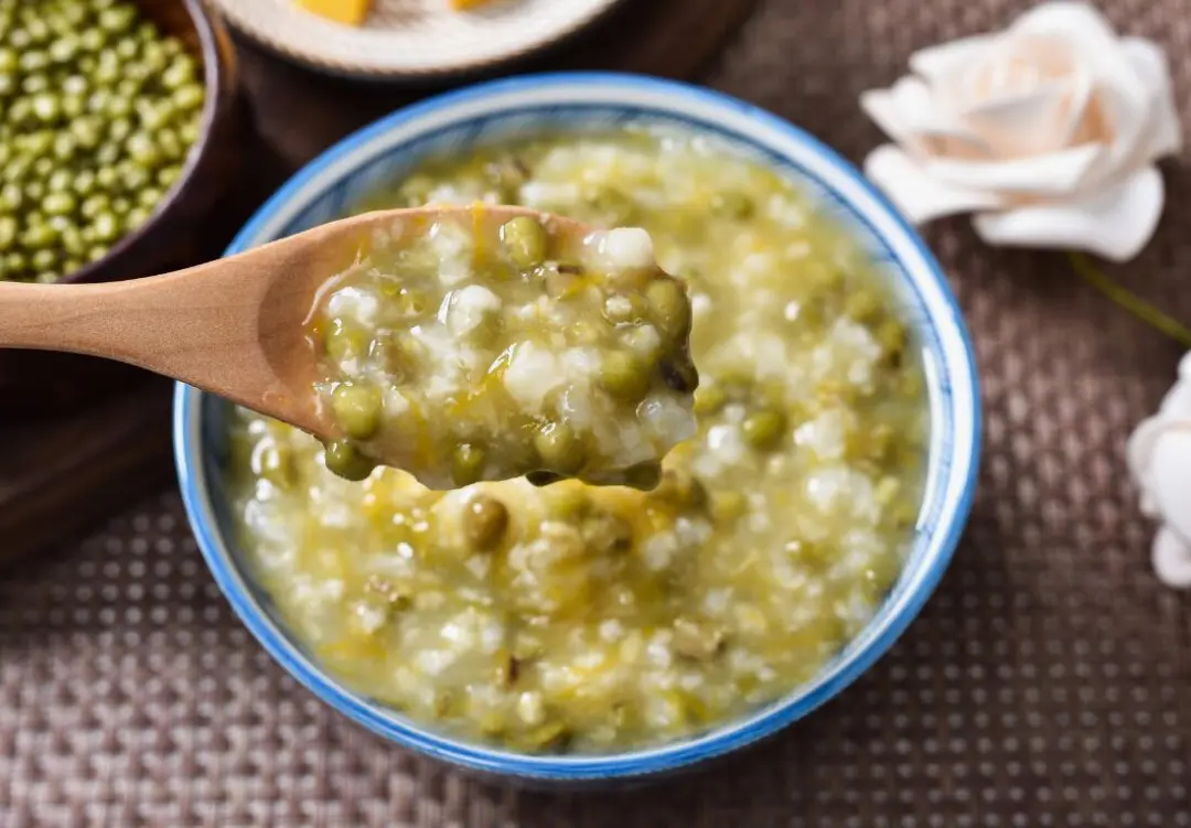 做法:将绿豆、薏米、大米洗净后浸泡半小时,然后一同放入锅中,加入适量清水煮至熟烂,最后加入冰糖调味即可。