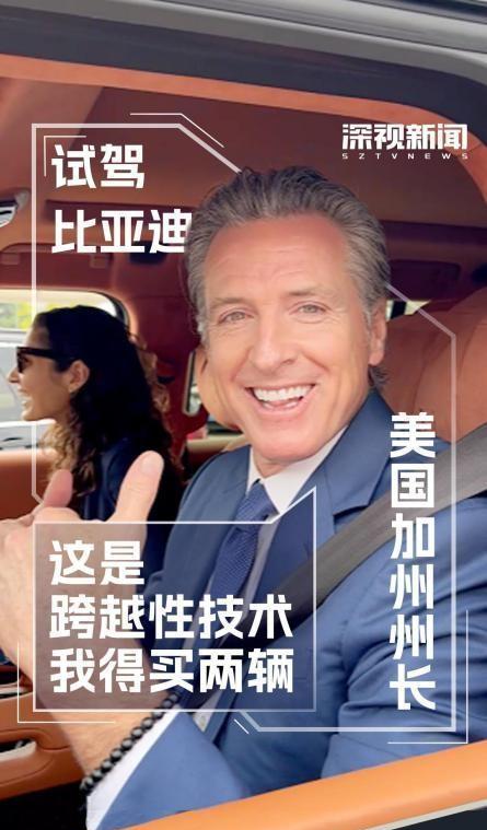 美加州州长带货比亚迪:我要把它引进美国。网友直言特斯拉同意么