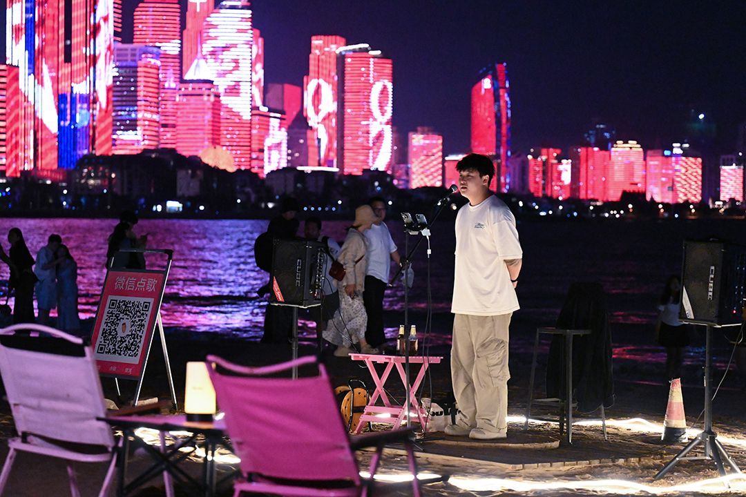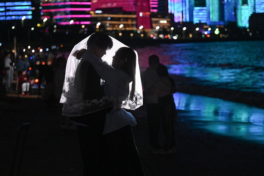 当暮色笼罩青岛,第三海水浴场便成了邂逅浮山湾灯光秀的“最佳观景台”,一场流光溢彩的视觉盛宴在此拉开帷幕。海岸线被斑斓灯光唤醒,高楼轮廓在夜色中流转出七彩光芒,宛如巨幅动态画卷在眼前铺展。沙滩上,点点外拍灯与远处的城市光影交相辉映,将海滨之夜晕染得愈发梦幻。游人们或驻足远眺,或举起相机,在光影交错间沉浸式感受璀璨景象。海浪轻拍沙滩的声响,与灯光变换的韵律巧妙融合,每一次快门按下,都能定格下兼具氛围感与大片质感的瞬间。论是与亲友共享此刻繁华,还是独自沉醉于海滨夜色,第三海水浴场都以独特的光影魅力,为每一位到访者编织出难忘的青岛夜记忆。(杨广科)