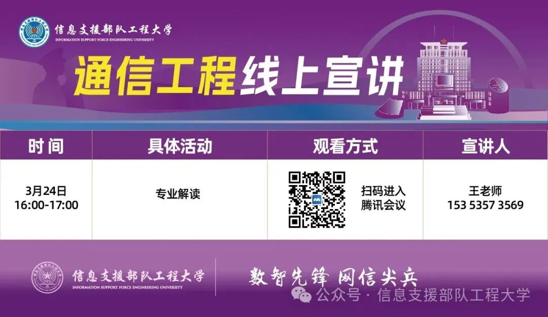 信息支援部队工程大学本科招生线上宣讲预告(3月23日至4月6日)
