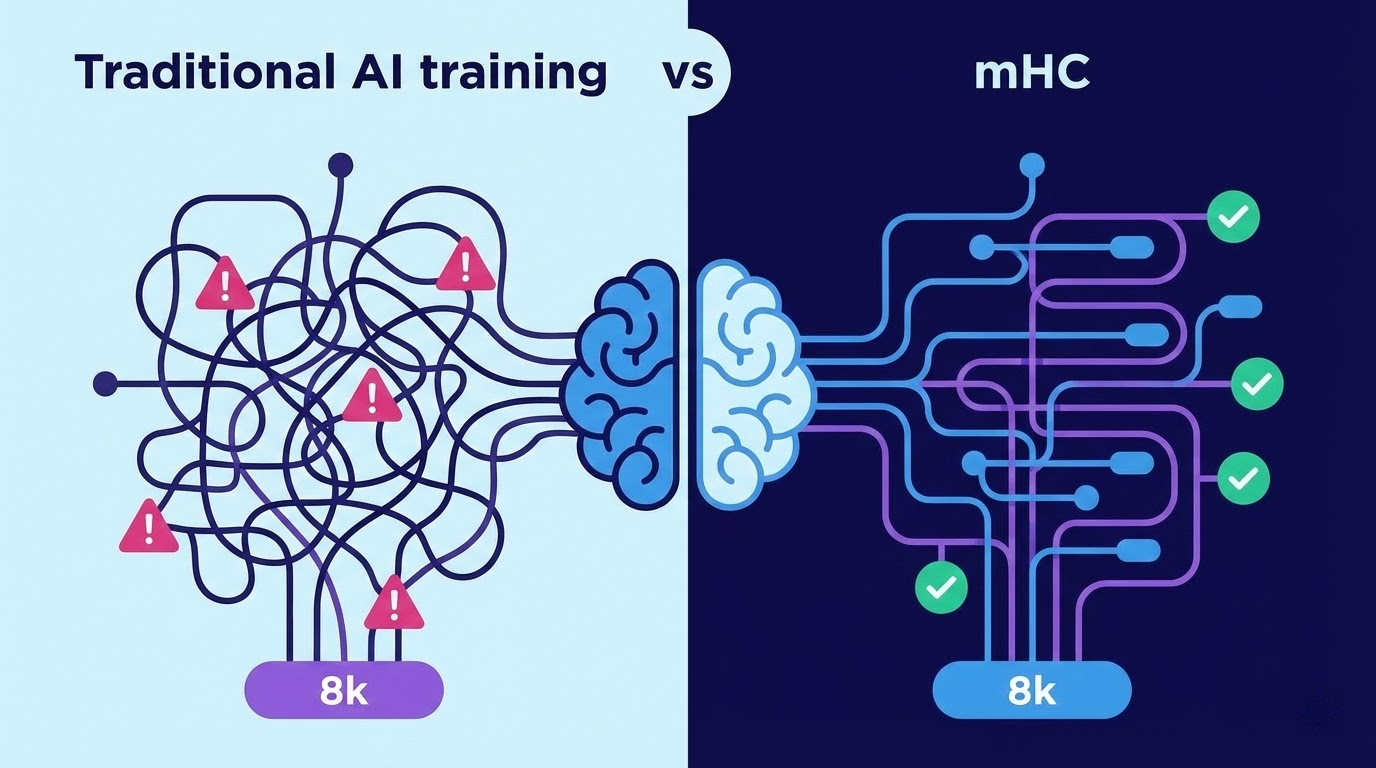这就像你开店,别人家有十个店员,你只有五个,那你就得想办法让这五个人干出十个人的活。mHC 就是这么个思路。