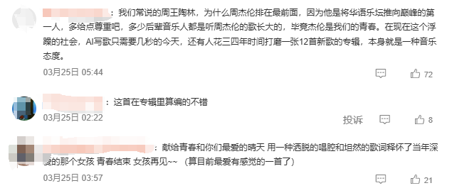 而面对舆论的各种反馈,面对歌迷的成长,周杰伦坦言:“很多歌迷学生时代听我的歌,如今步入社会,面临人生种种挑战,抗压性也弱了。希望音乐仍能带来正向的力量。”