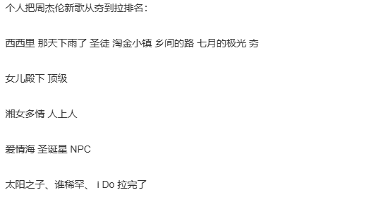 但专辑中的其他作品却凭借“周氏味道”赢得了广泛好评,例如《女儿殿下》《那天下雨了》《淘金小镇》。