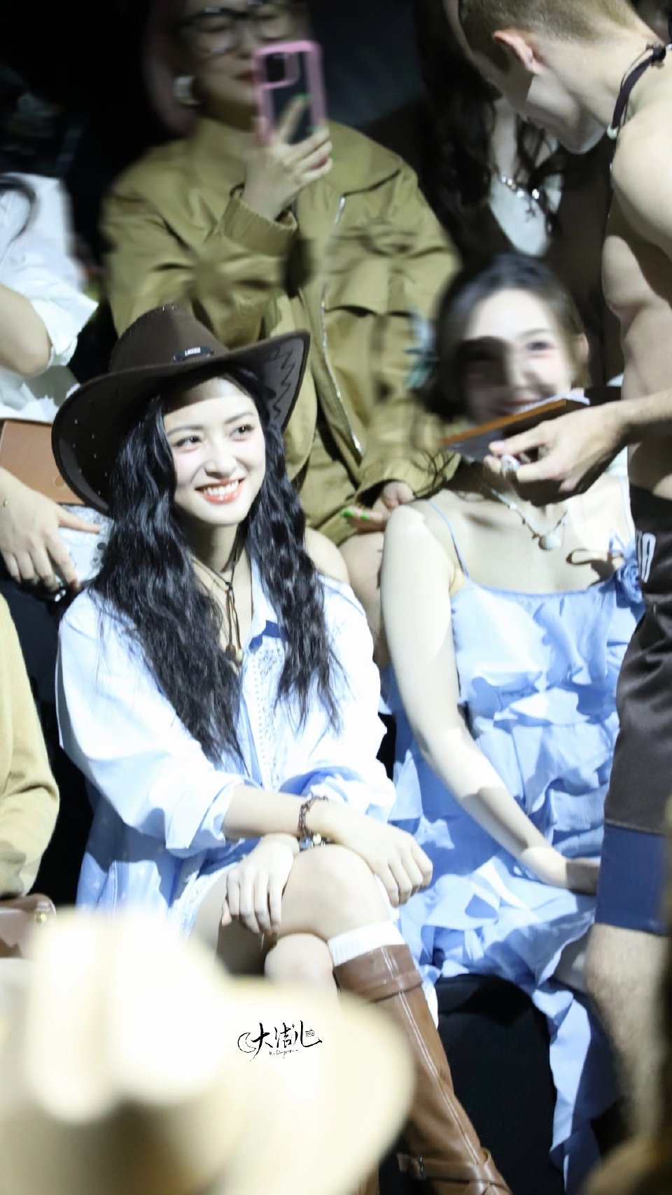 在上海时装周的一个西部主题秀场上,沈月与祝绪丹一同亮相,却意外遭遇了“美男攻势”。