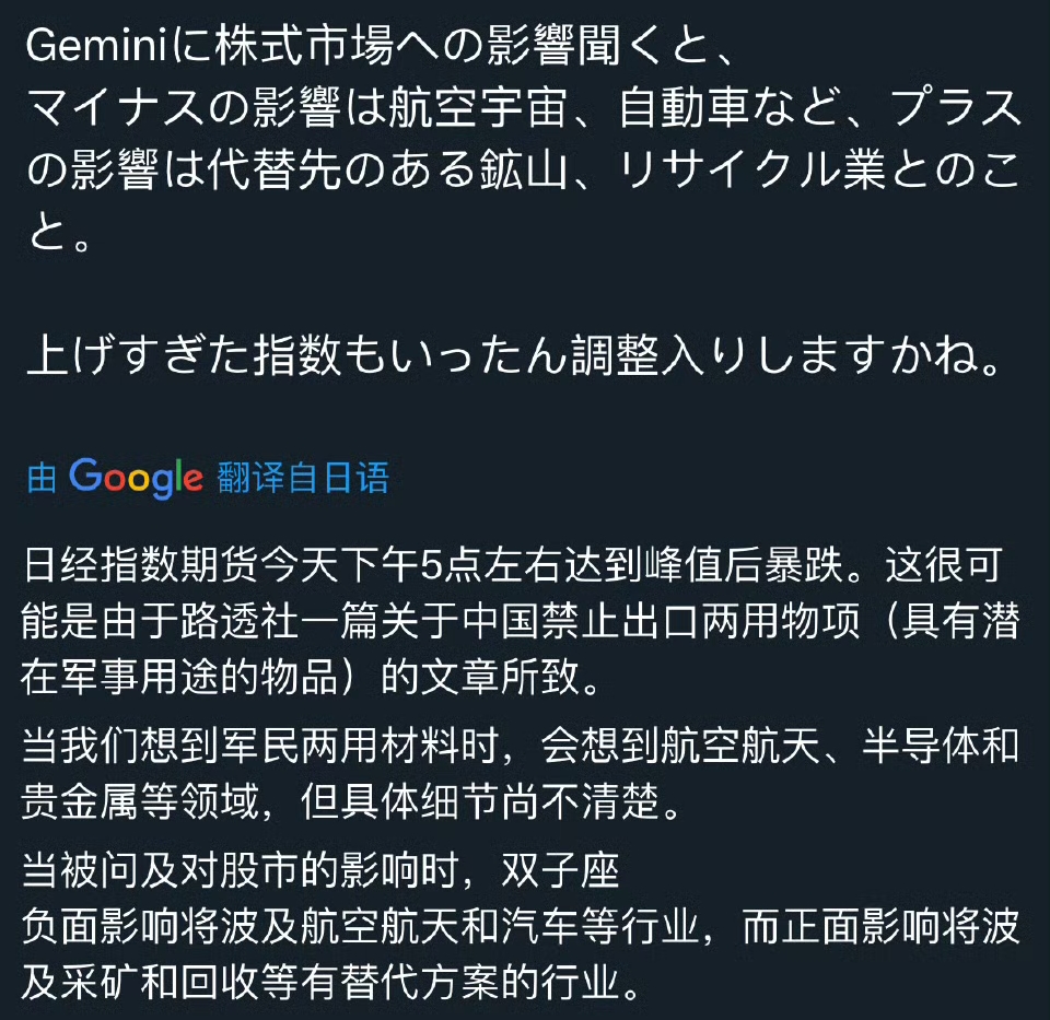 我商务部的公告一出,日本证券市场立即出现波动,当天日经指数暴跌,后续可能会波及更多的行业。