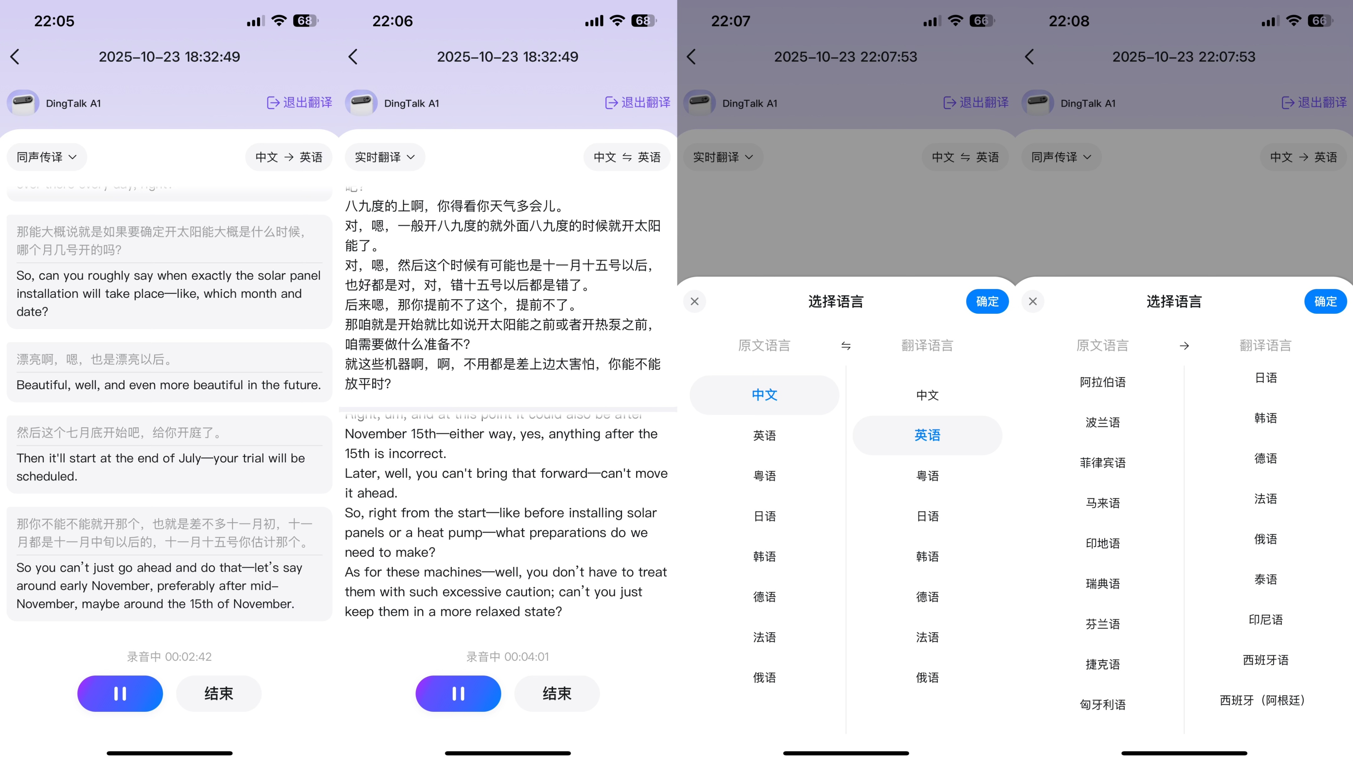 多语种支持及硬件支持客户千千万,我们需要接触更多层次消费群体才能做出更精准产品定位,面对不同语种消费者,DingTalk A1的实时翻译和同声传译变得更为重要,尤其是还支持边录边译,工作效率是不是肉眼可见的提升呢?尤其是同声传译在面对面沟通的实时交流的信息化传递,在思路不被打断时,理性表达变得会更加专注清晰。