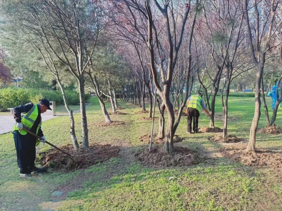 养护人员严格控制肥料用量与距离根系的间距,确保养分高效吸收,这次施肥能促进根系生长,提升园林绿化的整体效果,为来年萌芽开花储备充足养分。(贾海燕)