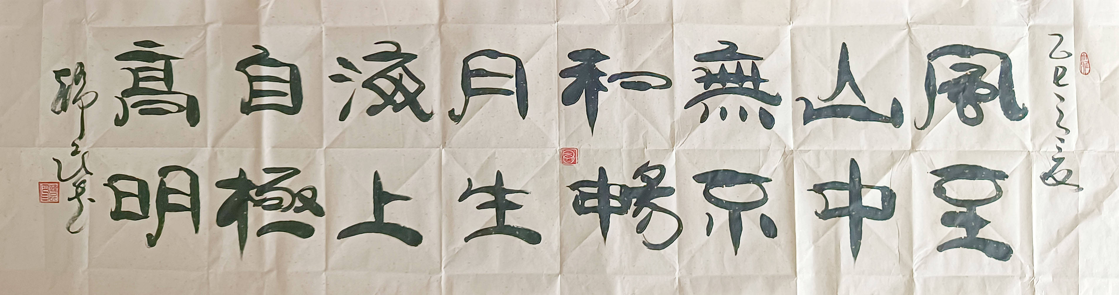 于隶书创作,韩民并非一味摹古,而是在临习汉隶碑帖的基础上融入新意。他的隶书作品兼具古朴厚重与灵动秀雅,结字端庄却不失灵韵,线条饱满而富有变化,既保留了汉隶的雄浑气度,又以细腻笔触增添“端庄灵秀、美丽大方”的时代气息,实现了传统隶书的创造性转化。