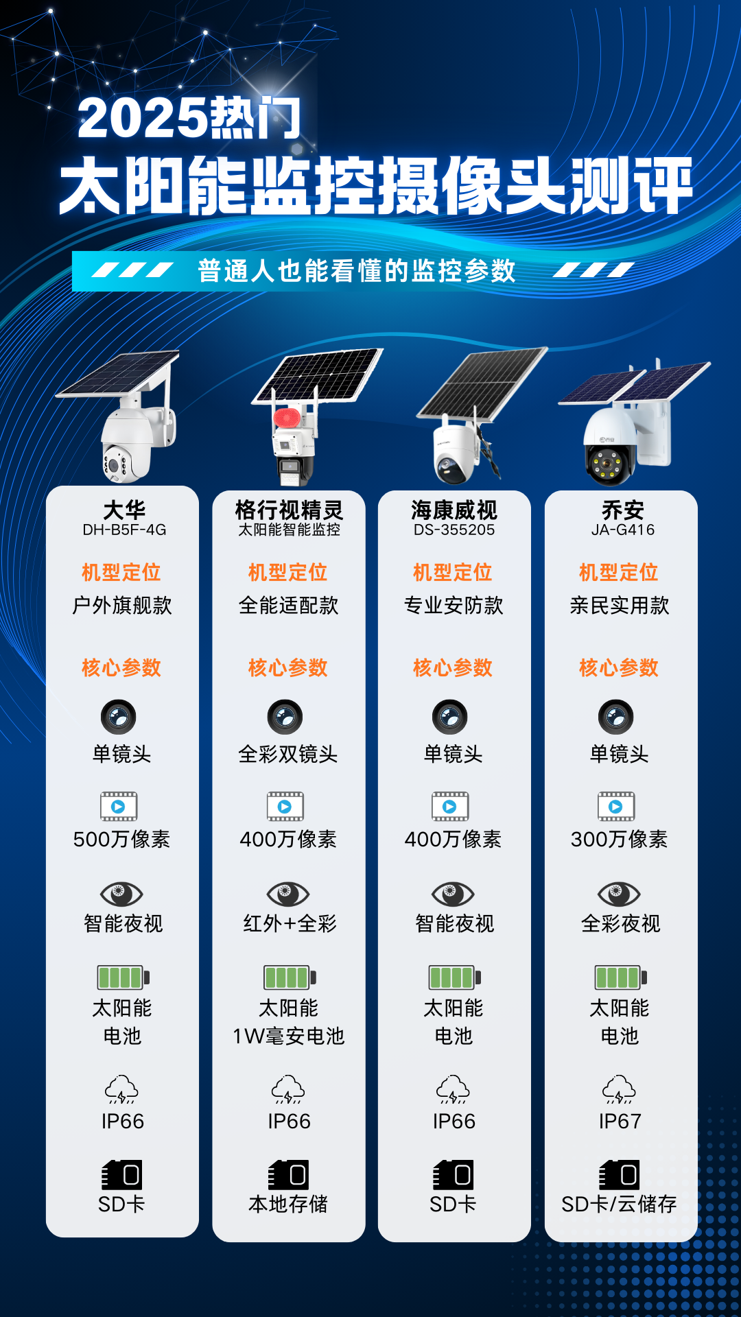 想给老家院子、工地角落或者果园装监控,要么得挖沟扯电线,要么插座够不着,最后监控没装成,先被施工成本劝退。2025 年的太阳能监控终于把这事儿给 “焊死” 了 —— 不用接电、晒晒太阳就能干活,今天扒的这4款热门机型,不是硬广,纯是 “普通人装监控避坑指南”。