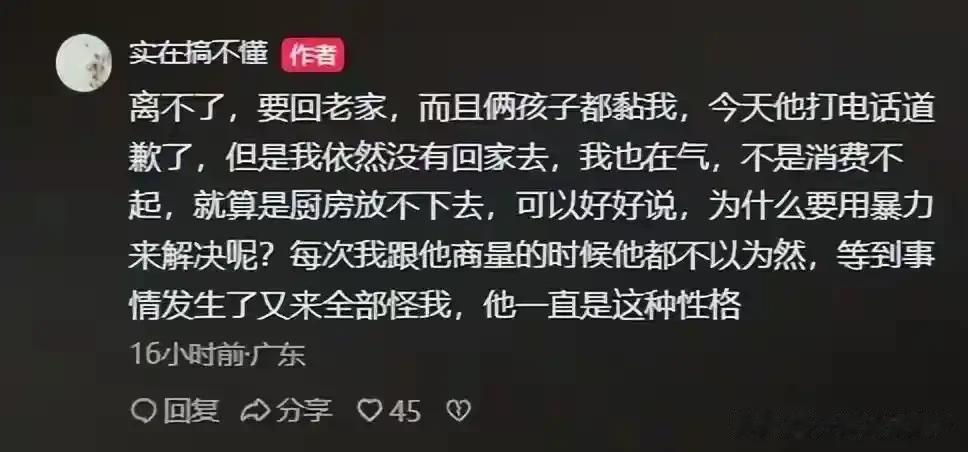 现在女方带着孩子住酒店,这一晚上的房费估计又得让丈夫肉疼好几天。这场冷战,烧的还是这个本就不富裕的家庭的底子。