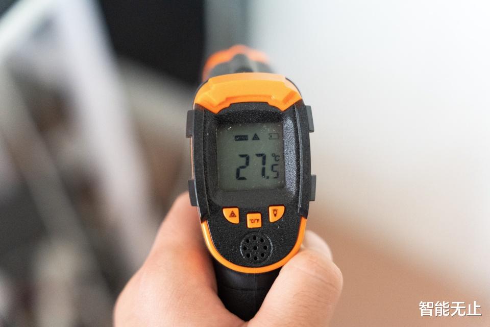 不仅仅是超强的制热性能,宫菱VSS还具备全域均匀制热特性,能够极大程度的提高温度的扩散范围,真正实现导热无盲区。当然这一点我也进行了实测。在我所处的卧室内,当机器开启了20分钟后,我在两个角落的温度进行了测量,发现和主风道直接对吹的温度范围没有超过5度,在温度均匀度这块表现的相当亮眼。
