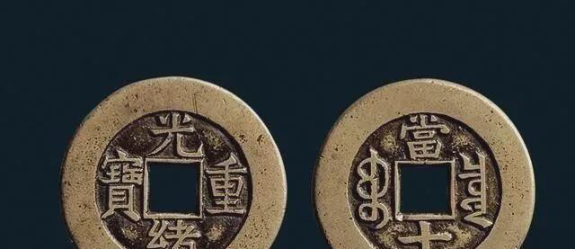 光绪重宝是清德宗爱新觉罗载湉在光绪年间 公元1875—1908年 所铸的当五、当十钱。形制较小平钱工整,面文为清秀楷书,直读,背穿左右为满文宝局名,上、下为汉文“当五”或“当十”二字。传世以户部宝泉局和工部宝源局铸造的较为常见,旧谱所列的各省局铸造的18品,恐系补铸,今不多见。