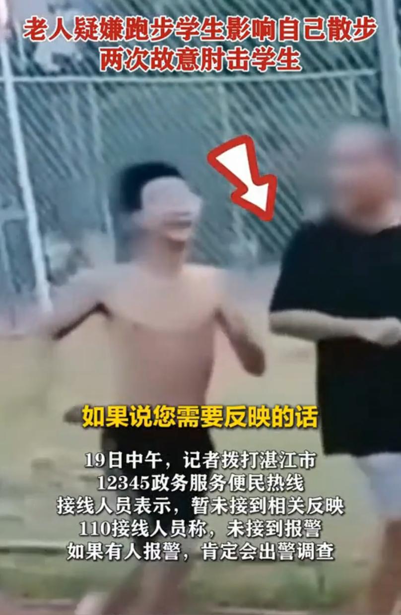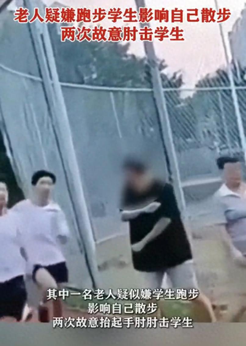 8月19日,一段拍摄于广东湛江某体育场的视频在微博等社交平台广泛传播。画面中,多名学生正在跑道进行跑步训练,一名黑衣老人沿内道行走。尽管跑步学生已主动减速、向跑道中间避让,老人仍突然转身,故意以肘部猛力撞击跑过的学生胸部,动作幅度大、发力明显,令人震惊。