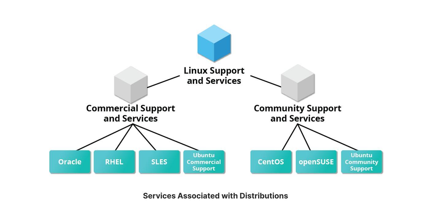 Linux发行版生态树状图——商业支持与社区支持两大分支