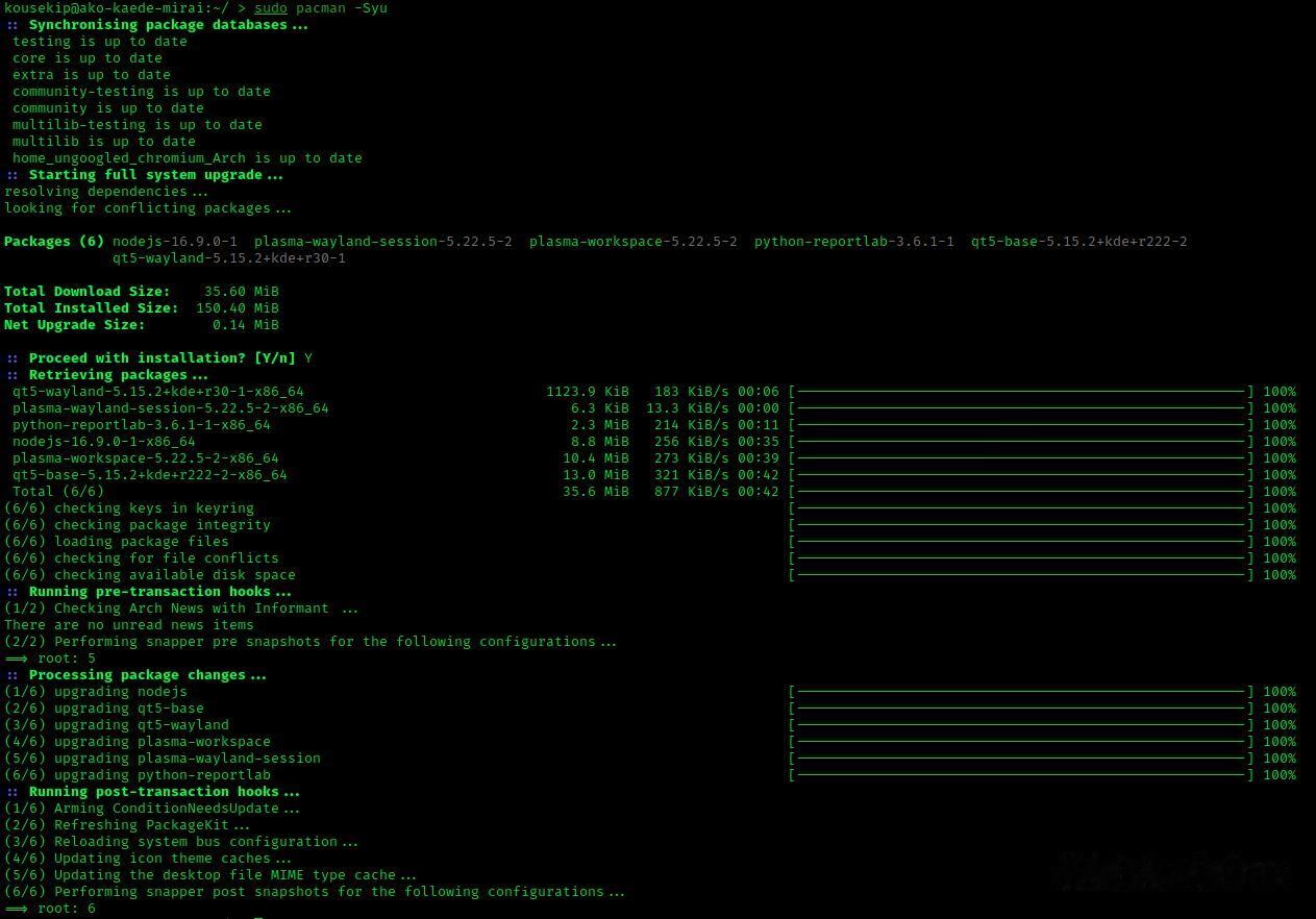 Arch Linux pacman更新终端——干净高效