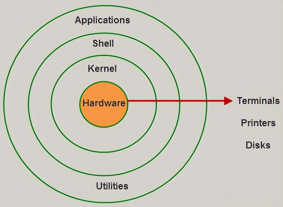 Linux系统架构分层图——内核在最核心,外面层层包裹用户可见的部分