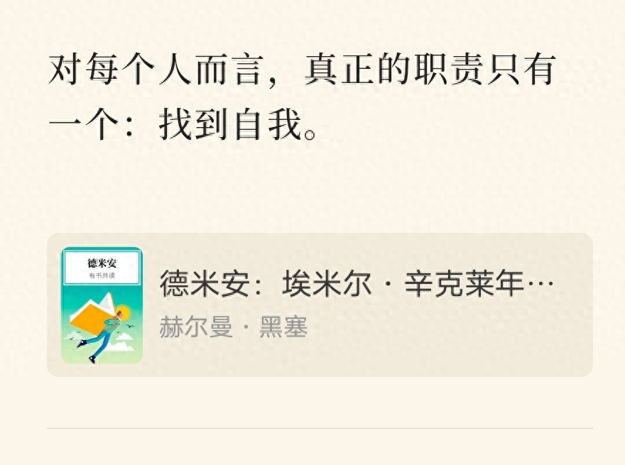 辛克莱一阵战栗,差点以为德米安死了,但也知道,他没有死,只是完全进入了自身。他紧紧盯着德米安,就像盯着一具雕像。辛克莱意识到,平时和自己交谈的,只不过是半个德米安。也许,他是为了帮助别人,才扮演某种角色,加入芸芸众生。而此刻的德米安,才是真正的他自己,被宁静和虚无环绕,像端坐的神像。如野兽般古老,如磐石般冷酷,看上去一片死寂,实际却充满无法窥视的生机。