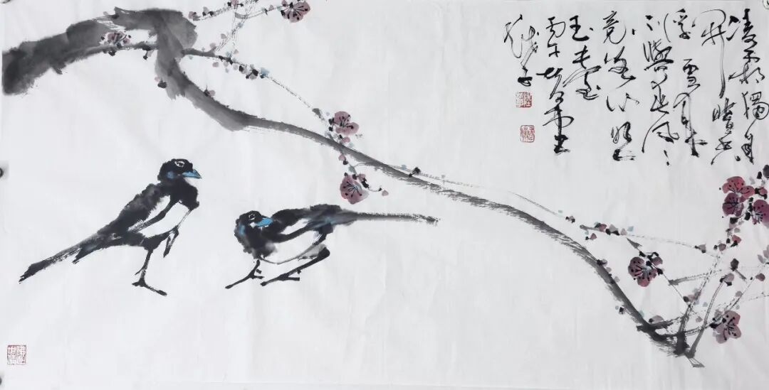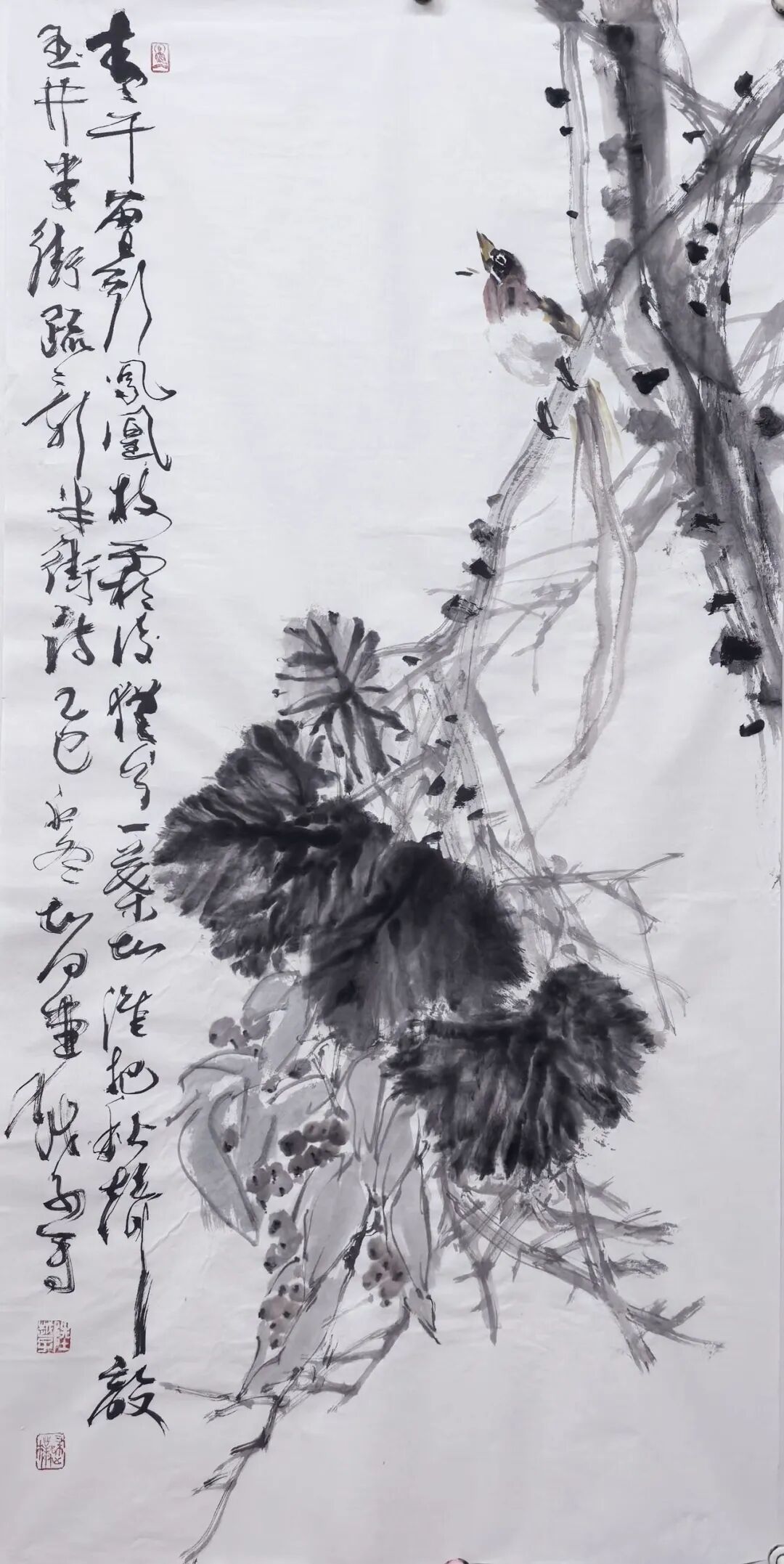 恪守书画同源古训,以书法笔意融入绘事,线条凝练苍劲、顿挫有度,用笔灵动多变,收放自如。墨色层次丰富,枯湿浓淡相生相映,水墨晕染自然天成。不刻意雕琢,不堆砌繁饰,于简约笔墨间写万物生机,以意驭形、以韵传神,尽显传统文人花鸟的雅致格调与自在意趣。