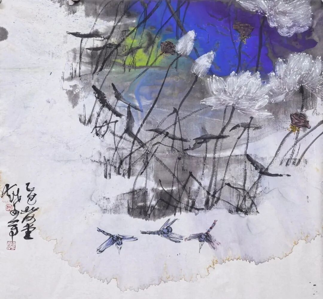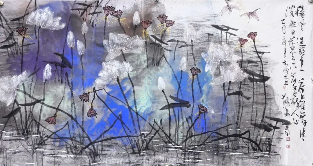 先生艺途自有传奇,历经笔墨蜕变,突破常规创作范式。因身体变故悟通艺理,转而左手挥毫,破固有程式、脱旧有法度。右手精工法度,左手写意抒怀,双向笔墨互为映衬,画风由秀润转为苍浑朴厚,笔墨更具书写性与抒情性,形成画坛少见的双手创作艺术面貌,独树一帜、别开生面。