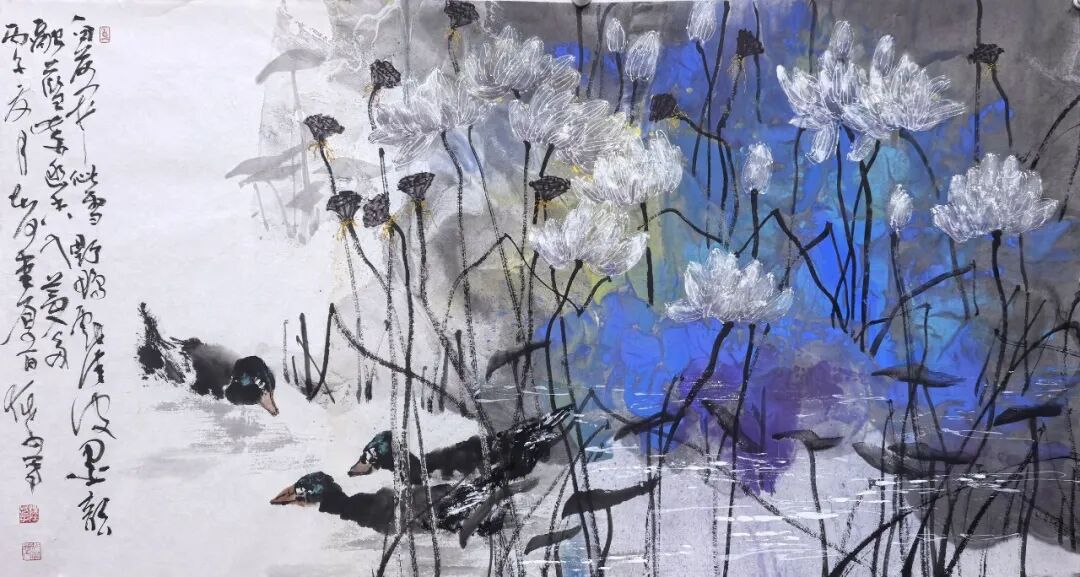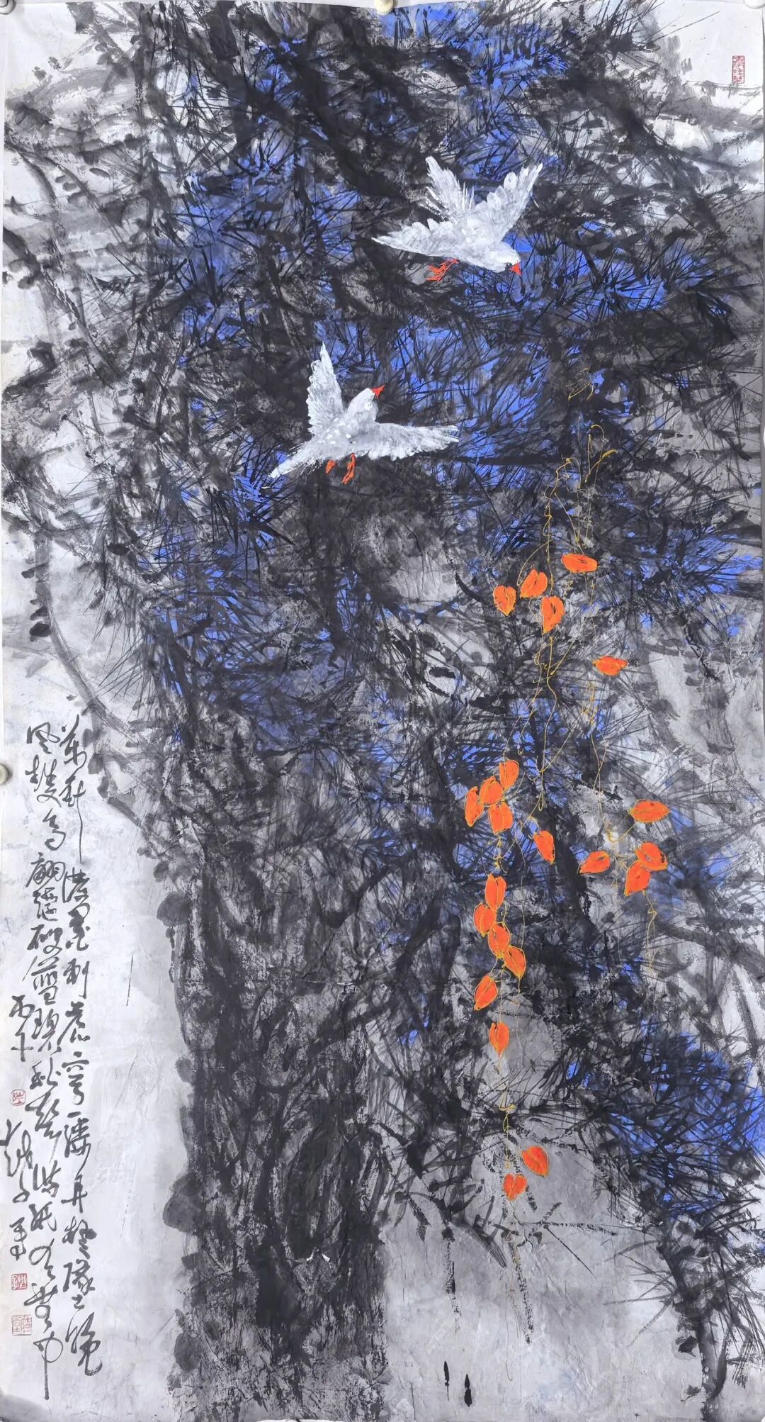 潜心花鸟深耕多年,深谙传统绘画正脉,上溯宋元花鸟意韵,下承明清文人写意精神。工笔细腻雅致、造型考究,写意洒脱沉厚、气韵饱满。兼融西画色彩理念与东方水墨意境,打破地域画风局限,南韵之秀、北气之雄兼而有之,工写互渗、古今相融,艺术语言丰富且极具辨识度。