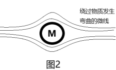 当微线遇到无法穿过的物质微粒时就会绕过微粒而发生弯曲,当物质运动时,微线弯曲着完全弹性碰撞滑过物质。如图2。