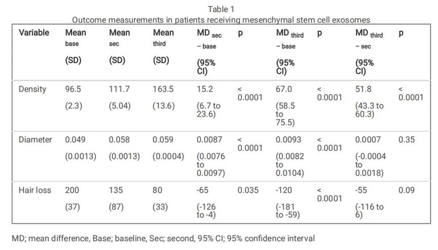 12名脱发患者接受干细胞外泌体治疗后,毛发密度与总量显著改善