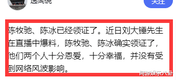 所以就这么僵持之中的,关于陈牧驰也结过婚的料就这么顺势被扒了出来!