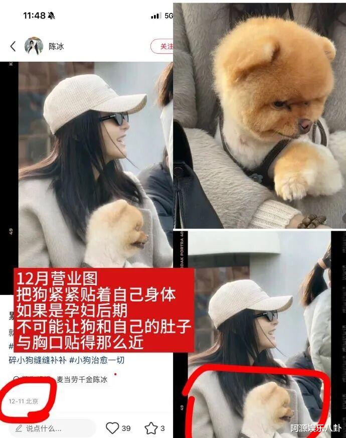 而且不是说孕妇不能接触宠物吗,陈冰12月份可是还发了和小狗贴贴的照片!