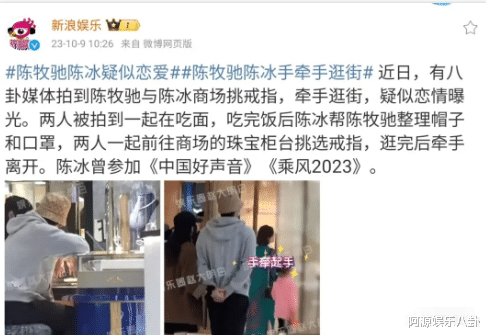 《封神1》是23年7月份上映的,陈牧驰是电影上映后开始红起来的,他和陈冰则是红起来后俩月就被拍了。23年10月,狗仔拍到陈牧驰和陈冰在商场挑戒指,牵手逛街的照片: