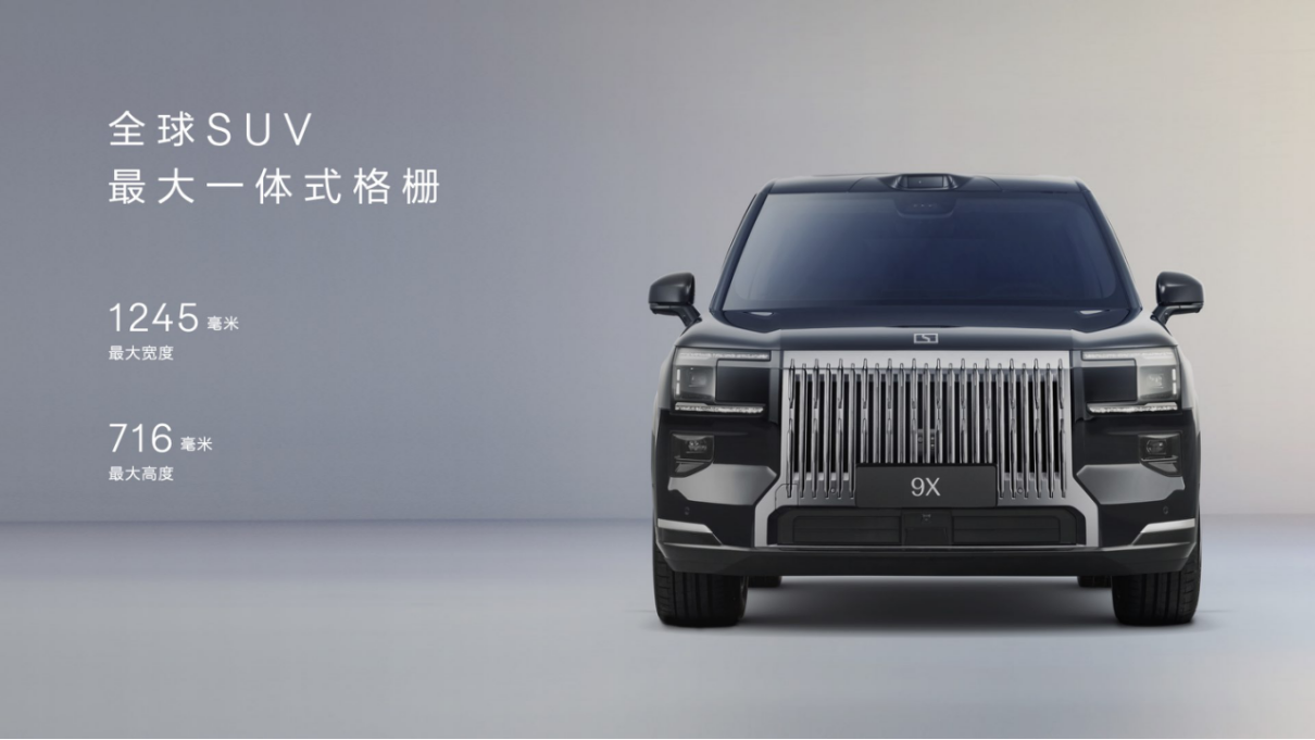 极氪9X以原创豪华设计,将旗舰气场、智能交互、便捷上下车体验与独特情感价值融为一体。其前脸延续极氪009的旗舰气质,采用全球SUV最大一体式格栅,并借鉴古代宫殿台基的设计加宽底部格栅,被用户誉为“史上最有旗舰气势的前脸”,更有先享用户形容为“正大光明”。