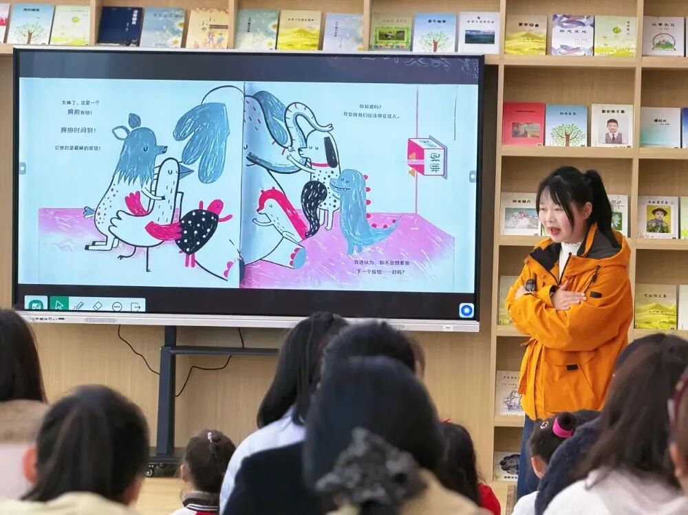 活动中,图书馆幼儿园大班组和中班组分别进行了精彩的课例展示。大班组选取了绘本《一根羽毛也不能动》,教师巧妙引导幼儿深入理解故事内涵,通过互动环节层层递进,激发幼儿思考,让孩子们在阅读中感受坚持的力量以及生命可贵的道理。中班组则以绘本《这里有一个按钮》展开生动有趣的课堂教学,充分调动幼儿积极性,引导他们探索按钮背后的的奇妙世界,激发他们的好奇心与求知欲。