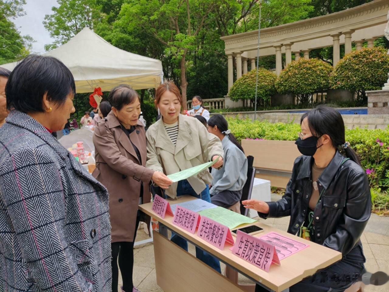 华讯网常州4月20日电(通讯员 张萍)“怎么网上做医保异地备案?”“老年人助餐申请需要什么材料?”“居家养老服务有哪些项目?”……今日,常州天宁街道通济桥社区在鼎邦花园北广场举办的便民集市上,一场以“医保、助餐、居家养老”为主题的政务宣传活动火热开展。社区网格工作人员将政策咨询台搬进集市,用通俗易懂的语言为居民答疑解惑,让惠民政策真正走进群众心坎里。