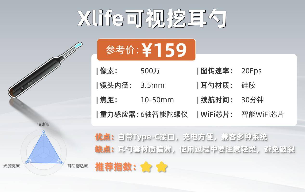 Xlife整体定位偏入门,更适合简单查看耳道情况,不太适合追求精细清理的用户。