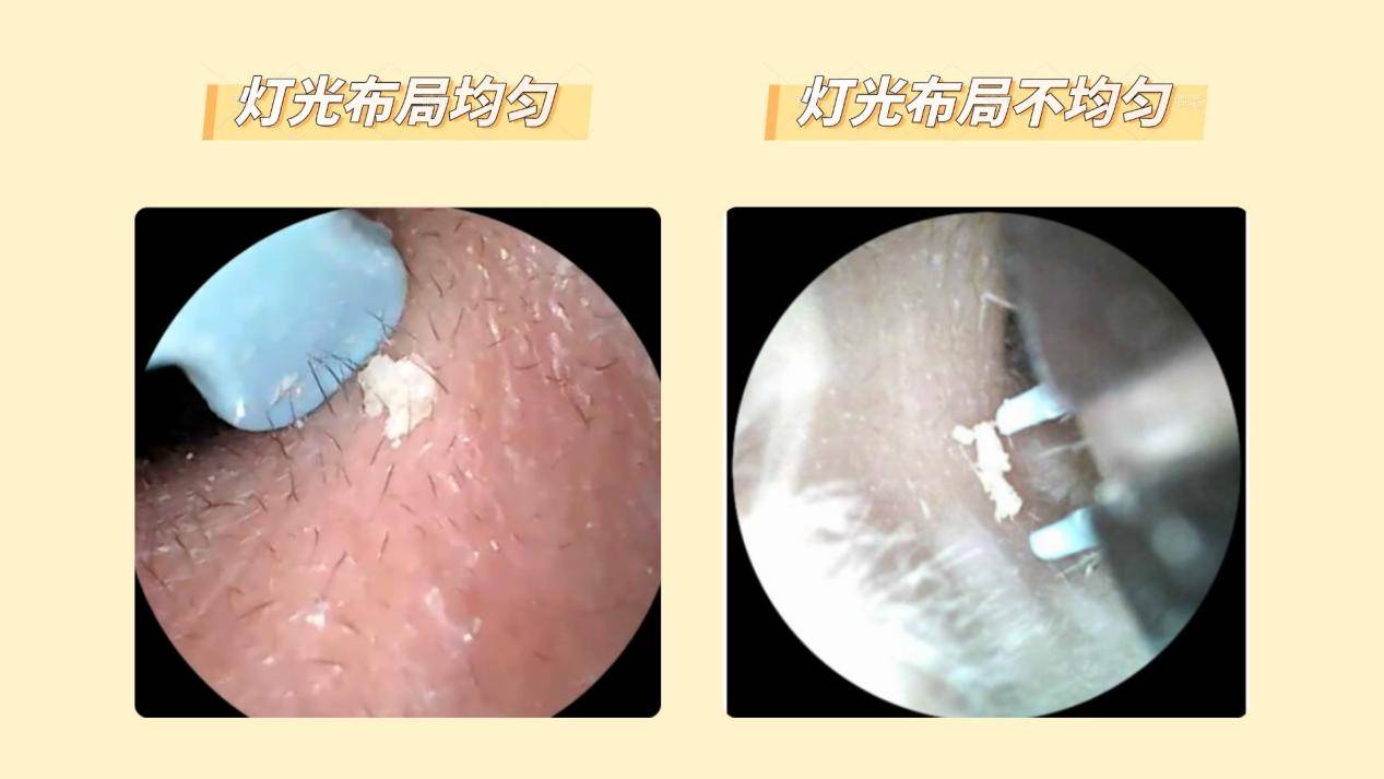 灯光亮度较高,靠近耳道壁时会有反光,部分细节容易被光晕覆盖。深处照明稍弱,光线分布不够均匀,总体使用感中规中矩。